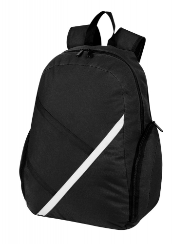 Precinct Backpack FEATURES Zippered main compartment with inner elastic bag Large zippered pocket on each side Adjustable backpack strap with carry handle FABRIC 600 denier nylon APPROXIMATE SIZE 30cm (W) x 42cm (H) x 15cm (D) STANDARD DECORATION AREA Front Lower Panel: 10cm (W) x 7cm (H) Front Upper Panel: 10cm (W) x 7cm (H)