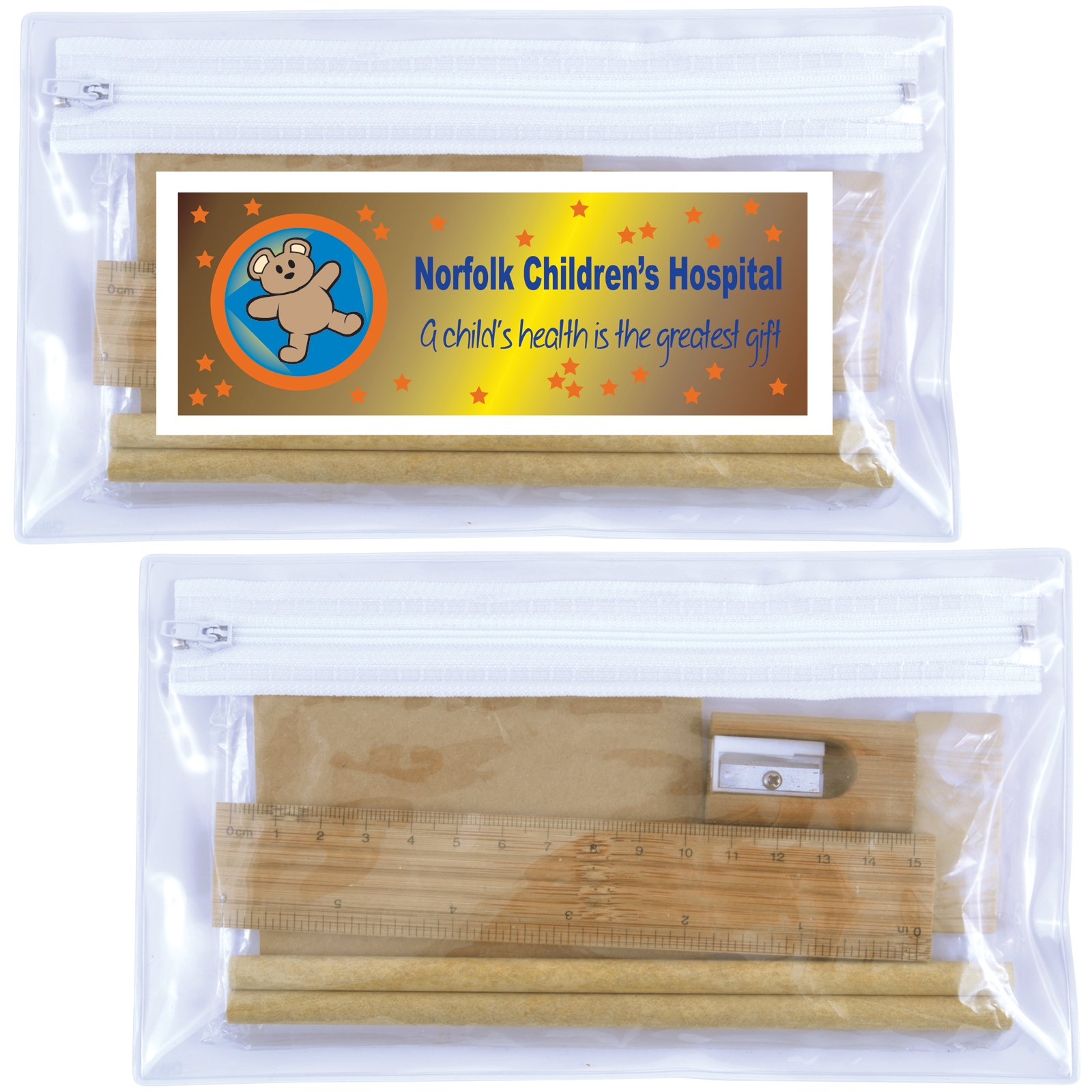 Bamboo Stationery Set in Cotton / Canvas Organiser / Pencil Case - LL21343