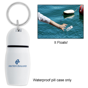 EXCLUSIVE DESIGN A waterproof designer key chain case for pills and other sensitive items. Size 89 (w) x 25 mm (h) (w/ key ring)