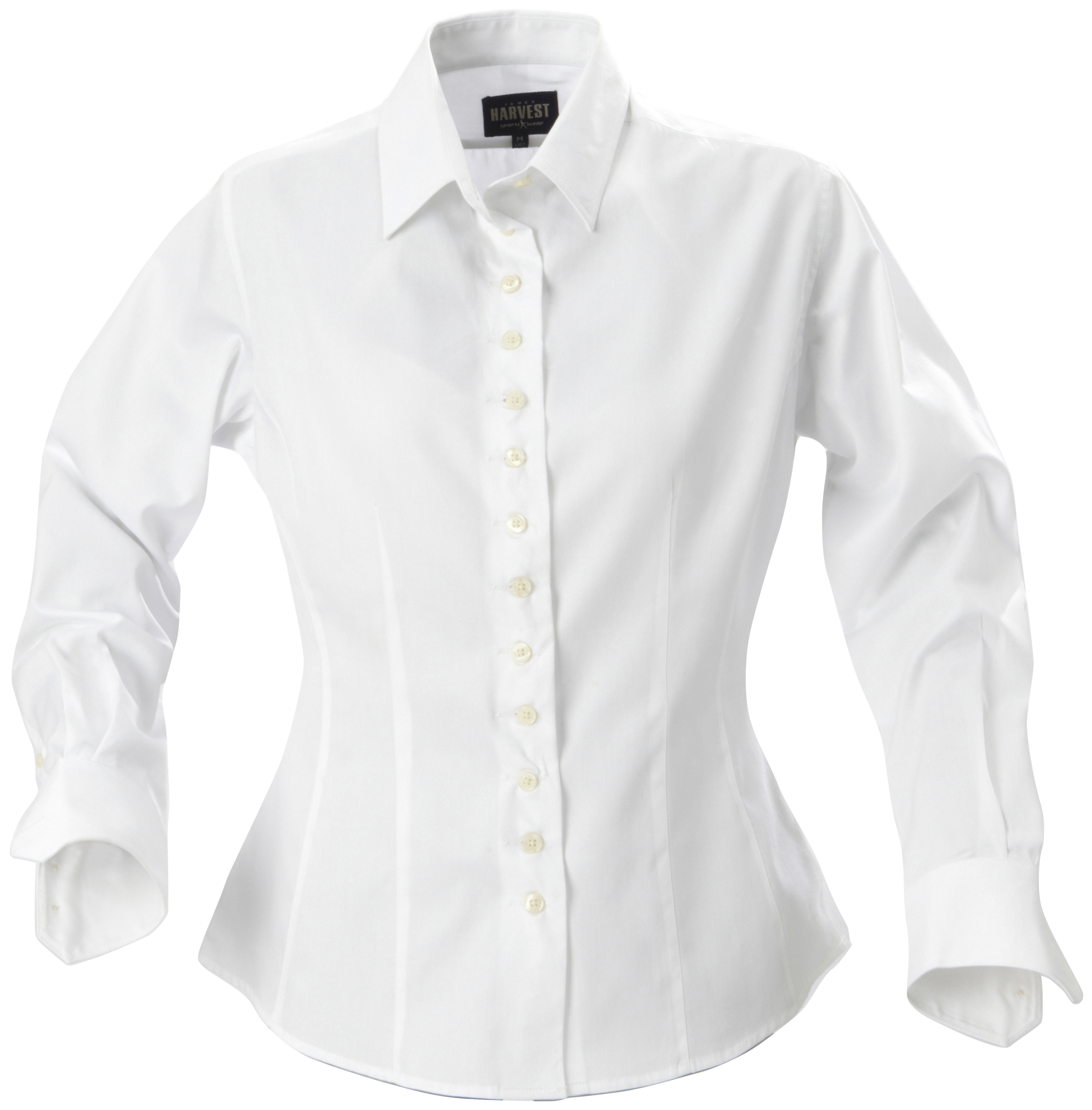 Ladies' fitted blouse with easy care treatment. Princess cut for better fitting. Interlining in wrap seams,and bones inside collar points. Material: 100% combed cotton. Colour: Black, Light Blue and White. Sizes: S?XXL