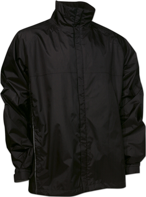 Stonewall Men's rain jacket. Front pockets and back pocket (perfect for scorecard and glove) with zipper. Drawstring at bottom hem. Soft and warm microfleece in collar. Reflective piping. Material: 100% polyester, side panels: 86% polyester, 14% elastane. Lining: 100% polyamide, mesh 100% polyester. (Hydrostatic head of 3000mm. The standard for waterproof materials is 2000mm) Colours: navy/black, light grey/black, black/black and red/black. Sizes: S-XXXL